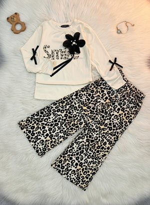 Girl's Chic Leopard Print Two-Piece Set - Jersey Top & Flowing Silk Pants