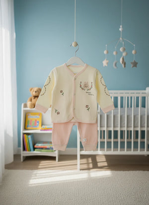 Dress your little one in delightful comfort with this Charming "Happy Double Bunny" Cotton Baby Set. Made from premium, soft cotton, this adorable 2-piece outfit features sweet bunny and floral designs, perfect for keeping your baby snug and stylish.